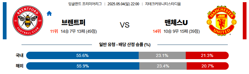 브렌트퍼드 대 맨유 프리미어리그 05월04일 맞대결 생중계, 스포츠중계, 스포츠분석