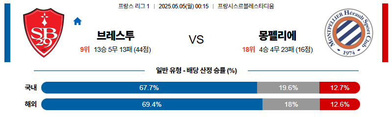 브레스트 대 몽펠리에 리그앙 05월05일 맞대결 생중계, 스포츠중계, 스포츠분석