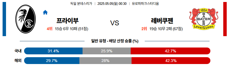 프라이부르크 대 레버쿠젠 분데스리가 05월05일 맞대결 생중계, 스포츠중계, 스포츠분석