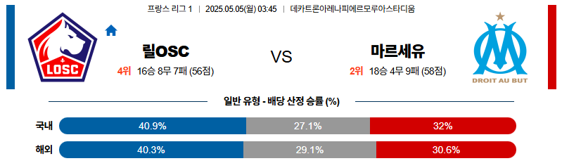 릴 대 마르세유 리그앙 05월05일 맞대결 생중계, 스포츠중계, 스포츠분석