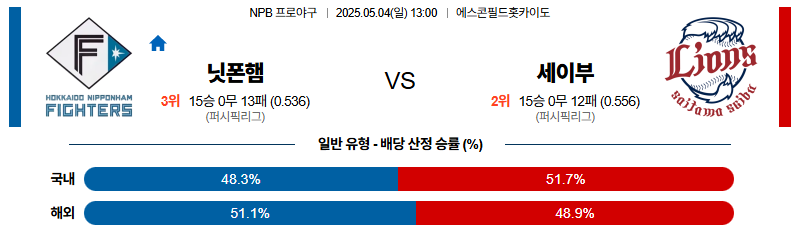 니혼햄 대 세이부 NPB 05월04일 맞대결 생중계, 스포츠중계, 스포츠분석
