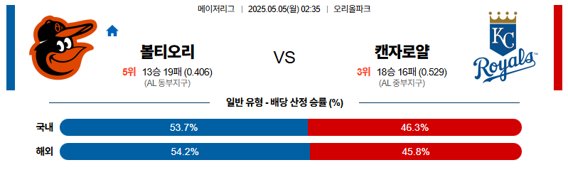 볼티모어 대 캔자스시티 MLB 05월05일 맞대결 생중계, 스포츠중계, 스포츠분석