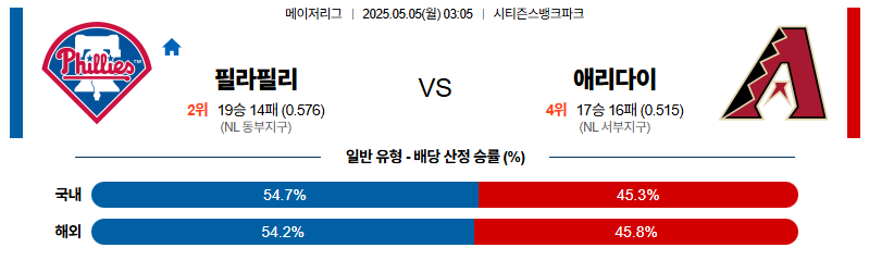 필라델피아 대 애리조나 MLB 05월05일 맞대결 생중계, 스포츠중계, 스포츠분석