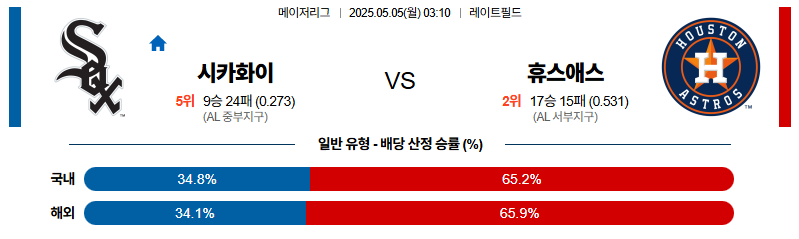 시카고W 대 휴스턴 MLB 05월05일 맞대결 생중계, 스포츠중계, 스포츠분석