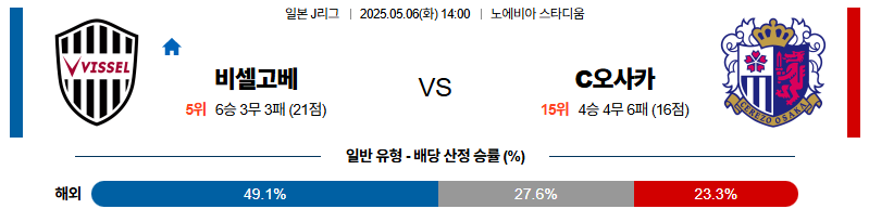 비셀고베 대 세레소오사카 J리그1 05월06일 맞대결 생중계, 스포츠중계, 스포츠분석