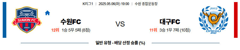 수원FC 대 대구FC K리그1 05월06일 맞대결 생중계, 스포츠중계, 스포츠분석
