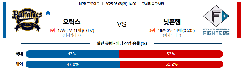 오릭스 대 니혼햄 NPB 05월06일 맞대결 생중계, 스포츠중계, 스포츠분석