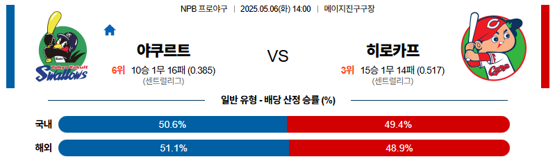 야쿠르트 대 히로시마 NPB 05월06일 맞대결 생중계, 스포츠중계, 스포츠분석