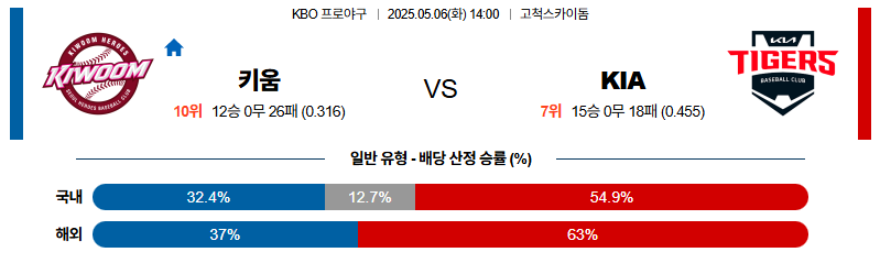 키움 대 KIA KBO 05월06일 맞대결 생중계, 스포츠중계, 스포츠분석