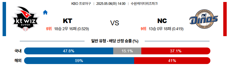 KT 대 NC KBO 05월06일 맞대결 생중계, 스포츠중계, 스포츠분석
