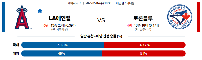 LA에인절스 대 토론토 MLB 05월07일 맞대결 생중계, 스포츠중계, 스포츠분석