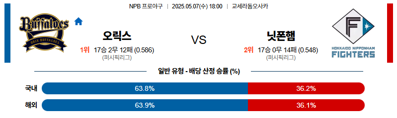 오릭스 대 니혼햄 NPB 05월07일 맞대결 생중계, 스포츠중계, 스포츠분석