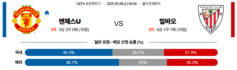 맨유 대 빌바오 UEFA유로파리그 05월09일 맞대결 생중계, 스포츠중계, 스포츠분석
