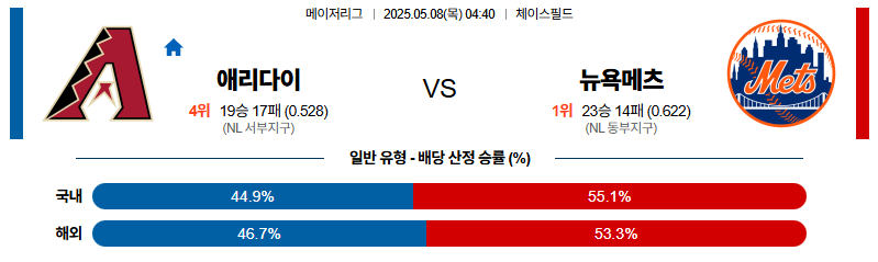 애리조나 대 뉴욕메츠 MLB 05월08일 맞대결 생중계, 스포츠중계, 스포츠분석