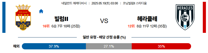 빌럼 대 헤라클레스 에레디비지에 05월10일 맞대결 생중계, 스포츠중계, 스포츠분석