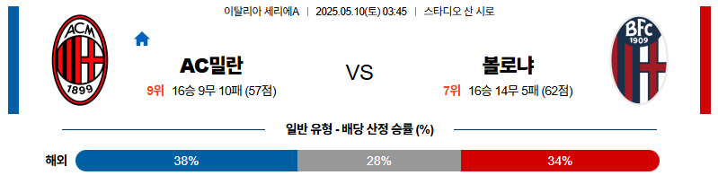 AC밀란 대 볼로냐 세리에A 05월10일 맞대결 생중계, 스포츠중계, 스포츠분석