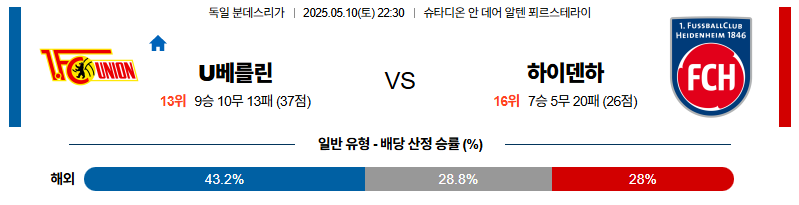 우니온베를린 대 하이덴하임 분데스리가 05월10일 맞대결 생중계, 스포츠중계, 스포츠분석