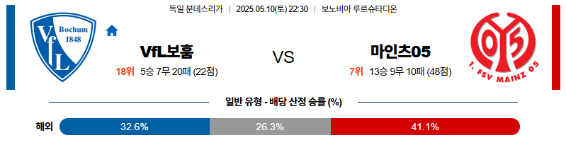 보훔 대 마인츠 분데스리가 05월10일 맞대결 생중계, 스포츠중계, 스포츠분석