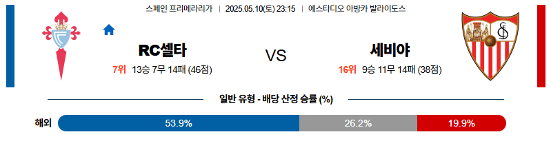 셀타비고 대 세비야 라리가 05월10일 맞대결 생중계, 스포츠중계, 스포츠분석