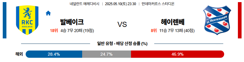 발바이크 대 헤이렌베인 에레디비지에 05월10일 맞대결 생중계, 스포츠중계, 스포츠분석