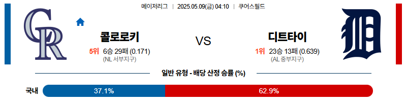 콜로라도 대 디트로이트 MLB 05월09일 맞대결 생중계, 스포츠중계, 스포츠분석