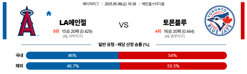 LA에인절스 대 토론토 MLB 05월09일 맞대결 생중계, 스포츠중계, 스포츠분석