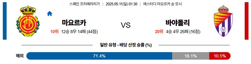 마요르카 대 바야돌리드 라리가 05월11일 맞대결 생중계, 스포츠중계, 스포츠분석