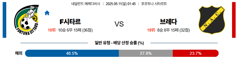 시타르트 대 브레다 에레디비지에 05월11일 맞대결 생중계, 스포츠중계, 스포츠분석