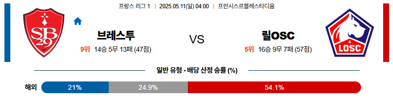 브레스트 대 릴 리그앙 05월11일 맞대결 생중계, 스포츠중계, 스포츠분석