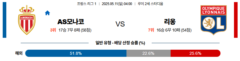 모나코 대 리옹 리그앙 05월11일 맞대결 생중계, 스포츠중계, 스포츠분석