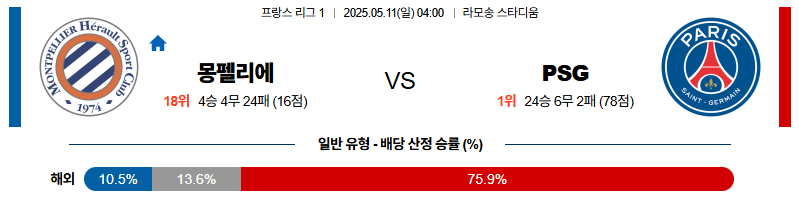 몽펠리에 대 PSG 리그앙 05월11일 맞대결 생중계, 스포츠중계, 스포츠분석