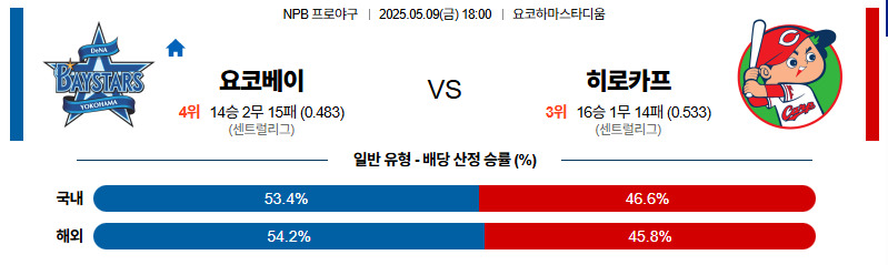 요코하마 대 히로시마 NPB 05월09일 맞대결 생중계, 스포츠중계, 스포츠분석