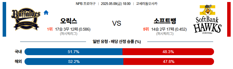 오릭스 대 소프트뱅크 NPB 05월09일 맞대결 생중계, 스포츠중계, 스포츠분석