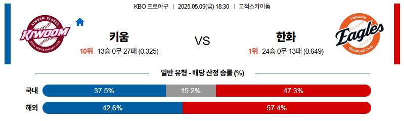 키움 대 한화 KBO 05월09일 맞대결 생중계, 스포츠중계, 스포츠분석