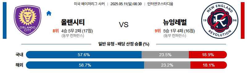 올랜도시티 대 뉴잉글랜드 메이저리그사커 05월11일 맞대결 생중계, 스포츠중계, 스포츠분석