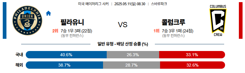 필라델피아 대 콜럼버스 메이저리그사커 05월11일 맞대결 생중계, 스포츠중계, 스포츠분석
