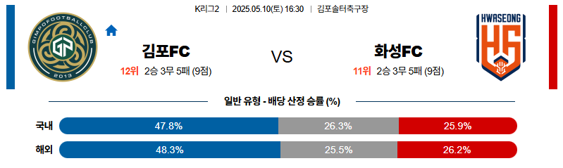 김포 대 화성 K리그2 05월10일 맞대결 생중계, 스포츠중계, 스포츠분석