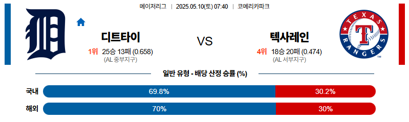 디트로이트 대 텍사스 MLB 05월10일 맞대결 생중계, 스포츠중계, 스포츠분석