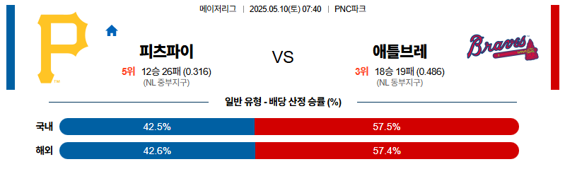 피츠버그 대 애틀랜타 MLB 05월10일 맞대결 생중계, 스포츠중계, 스포츠분석