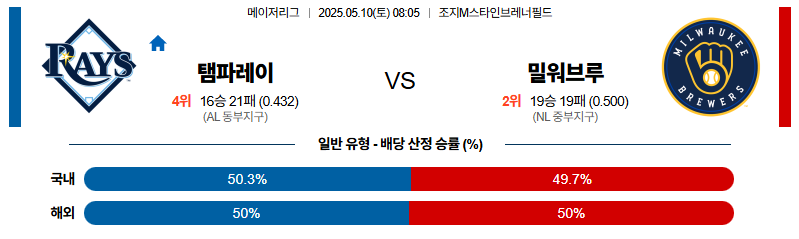 탬파베이 대 밀워키 MLB 05월10일 맞대결 생중계, 스포츠중계, 스포츠분석