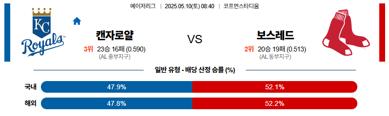 캔자스시티 대 보스턴 MLB 05월10일 맞대결 생중계, 스포츠중계, 스포츠분석