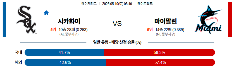 시카고W 대 마이애미 MLB 05월10일 맞대결 생중계, 스포츠중계, 스포츠분석