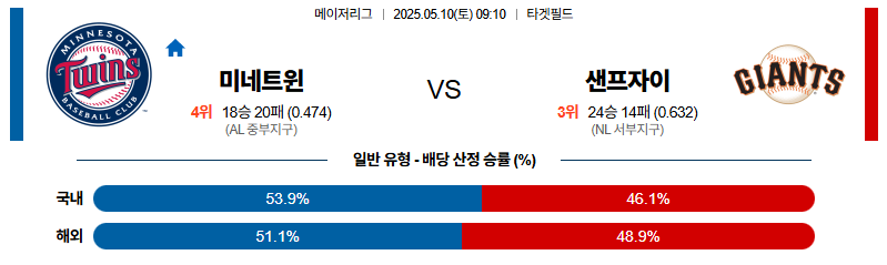 미네소타 대 샌프란시스코 MLB 05월10일 맞대결 생중계, 스포츠중계, 스포츠분석