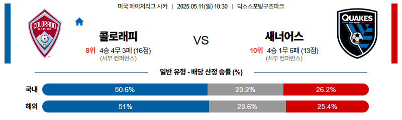 콜로라도 대 산호세 메이저리그사커 05월11일 맞대결 생중계, 스포츠중계, 스포츠분석