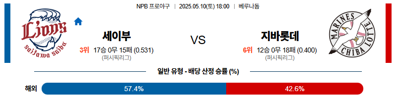 세이부 라이온즈의 승리를 추천드립니다.