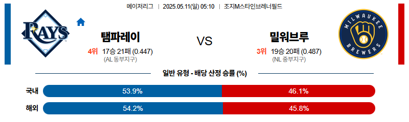 탬파베이 대 밀워키 MLB 05월11일 맞대결 생중계, 스포츠중계, 스포츠분석