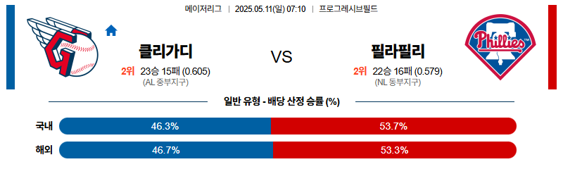 클리블랜드 대 필라델피아 MLB 05월11일 맞대결 생중계, 스포츠중계, 스포츠분석
