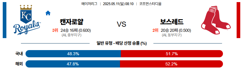 캔자스시티 대 보스턴 MLB 05월11일 맞대결 생중계, 스포츠중계, 스포츠분석