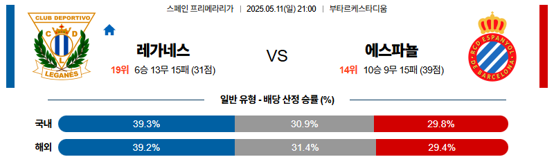 레가네스 대 에스파뇰 라리가 05월11일 맞대결 생중계, 스포츠중계, 스포츠분석