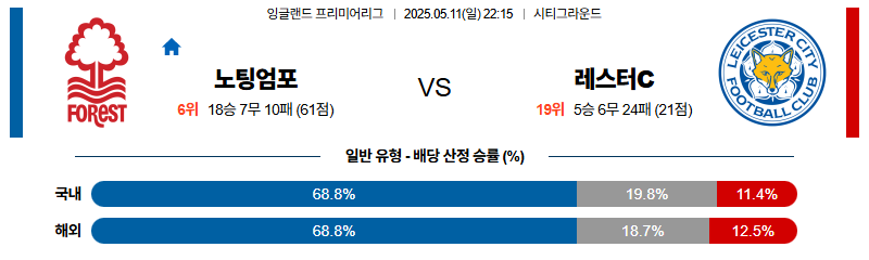 노팅엄 대 레스터시티 프리미어리그 05월11일 맞대결 생중계, 스포츠중계, 스포츠분석